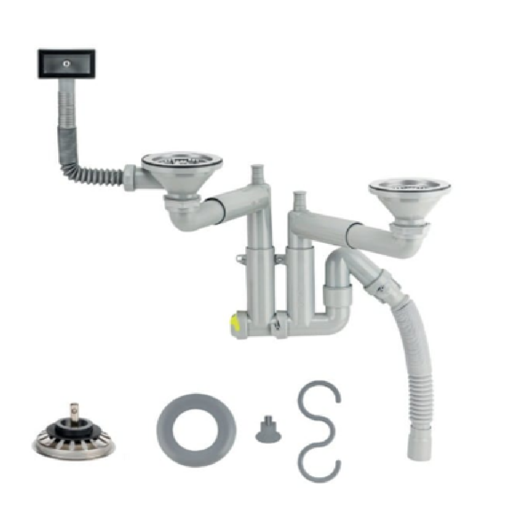 Körüklü Büyük Kafa Çift Göz Kare Taşmalı Teleskobik Evye Sifonu