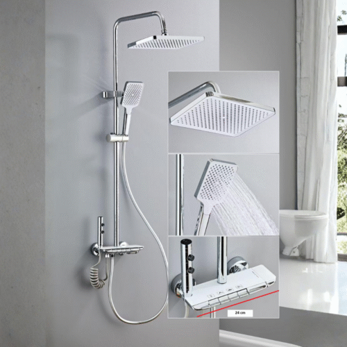 Nebula Piyano Kontrollü Duş Seti (Beyaz – Krom)