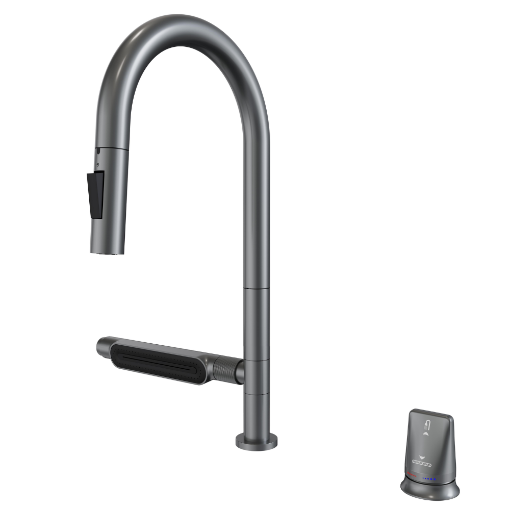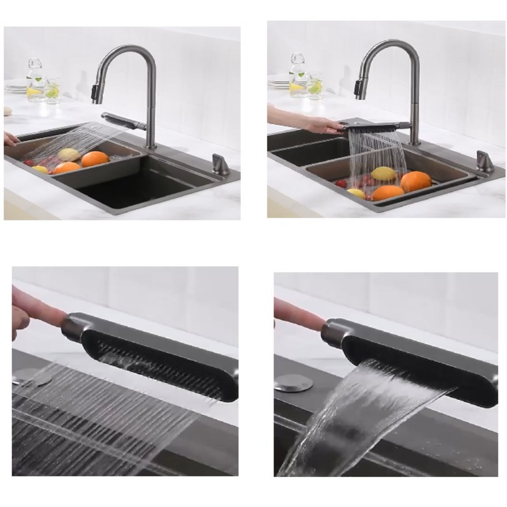 Modern mutfaklarda fonksiyonelliği ve şıklığı bir arada sunan TK10 Çok Fonksiyonlu Teknolojik Eviye, yenilikçi tasarımıyla suyun gücünü kontrol altına alır. Hareketli şelale barı, çekilebilir sprey başlığı ve ergonomik yapısıyla hem profesyonel hem de ev tipi mutfaklarda üst düzey kullanım konforu sağlar.