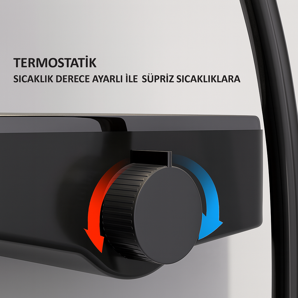 Termostat: Yüksek hassasiyetli kartuş ±1°C sıcaklık stabilitesi 38°C güvenlik kilidi