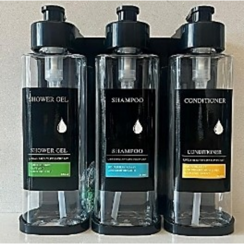 Modern ve şık tasarımıyla banyonuzda düzen ve estetik sağlayan 3’lü banyo seti, şampuan, duş jeli ve saç kremi gibi ürünleri bir arada, düzenli ve hijyenik şekilde kullanmanıza olanak tanır. Şeffaf gövdesi sayesinde içerisindeki ürün miktarı kolayca görülebilir. Dayanıklı pompa mekanizması uzun süreli ve pratik kullanım sunar. Hem ev hem de otel banyoları için ideal bir çözümdür.