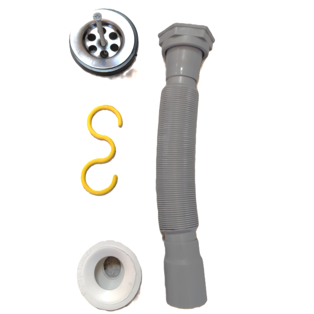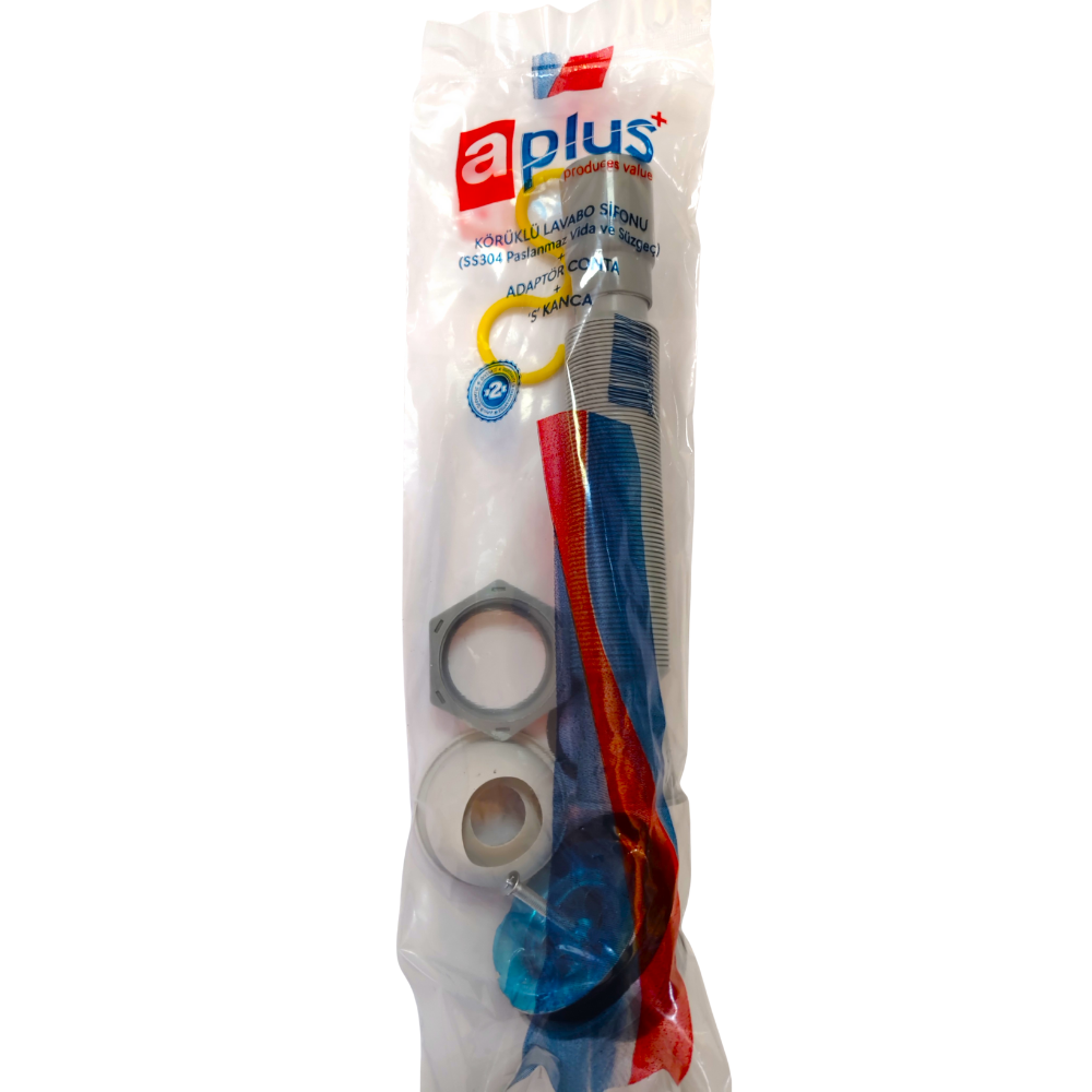 Lavabo bağlantıları için esnek körüklü, adaptör contalı lüks sifon seti.