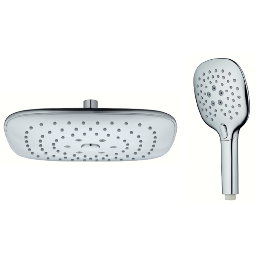 Geniş dairesel yağmurlama duş başlığı, homojen su dağılımı ile rahatlatıcı bir duş deneyimi sunarken ergonomik el duşu tasarımıyla kullanım konforunu artırır.